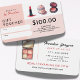 Apresentando a nossa Cartão de Presente de Cosméticos, a adição perfeita ao seu negócio de beleza. Projetado para corresponder à coleção Cute Cosmetics, este comprovante padrão de tamanho cartão de visita apresenta gráficos de maquiagem de aquarela e pinks de pincel de na moda. O lado frontal oferece amplo espaço para personalizar com suas informações comerciais, o valor do comprovante e quaisquer detalhes ou condições específicos. Ideal para maquiadores, consultores de beleza, cosmetologistas, especialistas em maquiagem de eventos e salões, este vale-presente profissional não só encanta seus clientes como também promove sua marca. O verso serve como um cartão de visita, garantindo que todas as suas informações de contato sejam facilmente acessíveis, fazer-as como uma ferramenta versátil e elegante para o seu negócio de beleza.