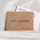 Design de cartão-presente personalizável para profissionais de beleza ou moda. Design simples com papel kraft impresso e fundo rosa leve.