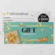 Design festivo glamouroso de alta qualidade, com caixa de presente de ouro de luxo, arco e fita com estrelas de ouro e bola de árvore de Natal sobre um simples fundo verde de menta pastel. Esta elegante e moderna certidão de presente é perfeita para a sua pequena empresa ou para oferecer amigos e família, especialmente para as férias de Natal.