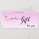 *Faux Glitter Sparkly Watercolor Professional Girly Feminine Chic Elegant Simple Minimalist Certificate / Gift Card / Gift Voucher / Com rico de script com tipografia encaracolada. Este design é o moderno popular Gradient Abstrato faux PINK GRADIENT OMBRE GLITTER design para Certificados de Presente e Vouchers de Presente. A caligrafia é dramática, rico e divertida. Este é um modelo de Gelam Luxe Faux Sparkly PINK GRADIENT OMBRE GLITTER Girly Trendy que você pode personalizar / personalizar. Esta opção pode ser utilizada para Empresas de Beleza, Spa, Hair Stylists , Lashes Techs , Beauty Salons , bem como para empresas de Nova Idade Holística , Espiritual , Esotérica , Metafísica e Tribal Gypsy também. Este design não é apenas para Mestrados Tribais Shaman Reiki, Professores de Yoga ou Terapistas de Massagem. Um leitor de mídia psiquiátrica Leitor da Lei de Manifestação do Attração Life Coach, bem como um curador de energia holístico, proprietário do Spa, Bela Empresa, Alquimista, Magico, Psicico, Leitor de Tarot, Clairvoyant, Hypnotist, Mestre de Cristal, Trabalhadores do Corpo, Trabalhadores da Luz, Treinadores Espiritais, Clairvidente, Terapistas de massagem, treinadores de vida, terapeutas, curandeiros de energia, instrutores de ioga média psicológica e muito mais serão atraídos pela sua energia adorável. Qualquer trabalhador ligeiro ou boa pessoa que trabalhe para curar ou prestar serviço ao mundo um cliente de cada vez. Esta design popular moderna Trendy será apreciada por beneficiários de muitas indústrias, como também excelente para qualquer negócio espiritual e metafísico de nova era curável, como Reiki Massage Yoga ou qualquer negócio feminino feminina da indústria da beleza como um Beauty Salon , Spa , Cosmetologista Especialista em Atenção à Pele, Beauty, Make up artist , Hair stylist , Unhas tech , Lashes e mais . Mágica é encontrada em todas as empresas :) *** CONTATE-ME SE VOCÊ GOSTARIA DE COMBINAR PRODUTOS DE MARCA PARA SEU NEGÓCIO. **** Meu nome é Anna Rosa e sou um curador de energia remoto à distância internacionalmente conhecido canalizando energia de cura e minha própria modalidade de cura de energia Aurora Mistica (R) desde 2001. Todos os meus designs e produtos são remotamente melhorados energicamente com uma doce energia de cura calma. Aproveite as boas vibrações :) Para mais vibrações sobre energia de cura de excelentes visite meus locais remotos de cura à distância: http://www.reikiwithtrust.com http://auroramisticadistancehealing.com. http://facebook.com/annarosaeverythingenergy Isenção de responsabilidade: O que eu faço como um curandeiro à distância é destinado a ser uma preferencialmente de elogio do que uma substituição para serviços médicos e psicológicos. Veja um profissional de saúde ou psicológico para seus desequilíbrios e reclamações.