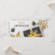 Design de férias de alta qualidade elegante com flocos de neve glamourosos de ouro brilhante, bolas pretas de árvores de Natal e uma caixa de presente preta sobre fundo de cinza leve. Este cartão de presente festivo sazonal é perfeito para a sua pequena empresa ou para oferecer amigos e família.