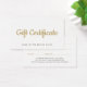 Elegante modelo de certificado de presente totalmente personalizável com fontes coloridas falsas em ouro e fundo branco. Perfeito para salão de beleza, cabeleireiro, maquiador. Design mínimo limpo.