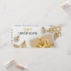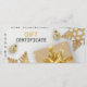 Design de férias de alta qualidade elegante com flocos de neve glamourosos de ouro brilhante, bolas de árvores de Natal douradas e uma caixa de presentes de ouro sobre fundo de cinza leve. Este cartão de presente festivo sazonal é perfeito para a sua pequena empresa ou para oferecer amigos e família.