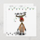 Ilustração de Natal engraçada e fofa, com uma rena com luzes de Natal nos chifres e nos passos das renas. Este certificado de presente engraçado é perfeito para sua pequena empresa ou para oferecer amigos e família.