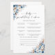 Cartão de Previsões de Bebê Floral Boho Azul. Este convite de chá de bebê elegante e sofisticado apresenta lindas flores Boho azuis pintadas à mão em aquarela. Encontre itens correspondentes na Coleção Floral Boho Azul.