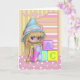 Cartão de primeiro aniversario gêmeo da irmã com menina bonito e blocos