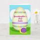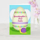 Este cartão de saudação apresenta uma cena de primavera com grama verde exuberante sob um céu azul brilhante, centrada em torno de uma grande forma de ovo creme que parece ser o foco de um doce momento familiar 🌷. Uma faixa suave de lavanda atravessa horizontalmente o ovo, bordeada por formas de diamante alternadas em azul turquesa e verde lima e pequenas flores fúcsia com centros amarelos ensolarados. No meio, letras magenta leem “Primeira Páscoa da Netinha”, colocadas de forma proeminente para que as palavras se destaquem contra o fundo pálido. Perto da curva superior do ovo, um coração tênue aparece em um tom claro, delineado com pequenos acentos pontilhados que sugerem afeto gentil. Apoiado na borda superior, há um pequeno caracol com corpo amarelo quente, dando à cena um companheiro calmo e amigável 🐇. As pontas de suas antenas são laranjas e seus olhos estão fechados como se estivesse quietamente a desfrutar do dia. A concha do caracol é uma espiral roxa rica que contrasta fortemente com o ovo