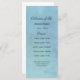 Serviço memorial Elegante ou Celebração do Life Memorial cartão de programa com fundo azul de aquarela. Personalize todo o texto; se você não precisar de um campo, basta excluí-lo. Uma celebração de um evento de vida é uma forma maravilhosa de reunir e prestar homenagem a um ente querido, além ou em vez de um serviço de funeral tradicional. O cartão de programa pode servir de guia para a ordem de serviço no evento e também como uma manutenção. Se você quiser, pode adicionar uma biografia ou outro texto na parte traseira do cartão.
