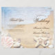 Ideal para um casamento de praia tropical, este cartão de programa dobrado por Mylini Design é perfeitamente personalizável para atender às suas necessidades. A bela carta apresenta uma cena de praia tropical cheia de águas límpidas. Com amplo espaço para o seu programa de casamento, o cartão fornece um guia de informação útil para os seus convidados. O design dobrável adiciona um toque elegante e sofisticado ao seu grande dia. Quer você esteja planejando um casamento de praia pequeno ou grande, você não pode errar com este incrível cartão de casamento de praia tropical.