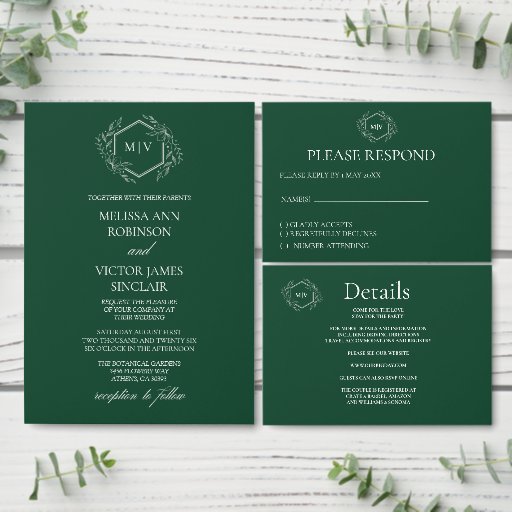 Emerald Green Monogram Crest Wedding SuiteCriado por Phyllis Waugh