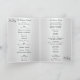 Lindo com flores brancas e alianças de casamento prateadas. Quando você e seu futuro cônjuge iniciarem a caminhada pelo corredor, certifique-se de que seus amigos e familiares estejam preparados para celebrar cada passo de sua jornada com esses elegantes convites de casamento dobrados. Este belo cartão de programa já está pronto para ser personalizado. Personalize o cartão alterando o texto nos campos fornecidos em todas as páginas. Você pode alterar o estilo, tamanho e cor da fonte, bem como o tipo e estilo do papel.
