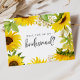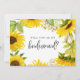 Este cartão de proposta de donzela de girassol é perfeito para um casamento rústico. O clássico design moderno apresenta lindas flores silvestres amarelas brilhantes, com uma vintage no verão ou tema de outono. Personalize a placa com o nome da noiva e da dama de honra. Personalize a parte traseira do cartão com uma mensagem personalizada.
