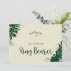 Folhagem Tropical Moderna Folhagem e Folhas Borda Cartões de Proposta Personalizados para Portador de Aliança. Perfeito para a papelaria do seu casamento com tema tropical. Em uma paleta de cores ousadas de verdes ricos, esmeralda e aparência de folha de ouro. Este design é perfeito para um casamento na praia, destino ou verão. Com sentimentos de um paraíso tropical, este design de folha de palmeira vívida complementará o seu local de casamento na praia ou tropical. Em um esquema de cores verde escuro, azul-esverdeado, esmeralda, folhagem e ouro - Cartões de Proposta para Portador de Aliança.