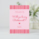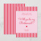 Cartão de Proposta de Dama de Honra com Listras Vermelhas e Rosas Retrô