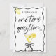 Cartão de Proposta de Dama de Honra Elegante e Chic de Martini de Limão - Uma Pergunta TINI... Peça àquela amiga especial para ser sua dama de honra com este cartão de proposta de dama de honra temático de martini elegante. Com uma ilustração em aquarela de um martini de limão com um laço coquete preto elegante e uma moldura de fita rabiscada e desenhada à mão e peculiar. Uma mistura de tipografia cursiva e fonte de bloco estilosa, adiciona um toque de elegância caprichosa. Personalize este cartão de proposta "você será minha dama de honra" adicionando sua própria mensagem personalizada.
