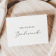 Esta delicada carta de proposta de madrinha de caligrafia é perfeita para um casamento moderno. A design romântica minimalista apresenta uma magnífica e elegante tipografia negra num fundo branco com um aspecto simples e limpo. Personalize a placa com o nome da noiva e da dama de honra. Personalize a parte traseira do cartão com uma mensagem personalizada.