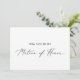 Esta delicada carta de pedido de caligrafia de honra é perfeita para um casamento moderno. A design romântica minimalista apresenta uma magnífica e elegante tipografia negra num fundo branco com um aspecto simples e limpo. Personalize o cartão com o nome da noiva e a matriz de honra. Personalize a parte traseira do cartão com uma mensagem personalizada.