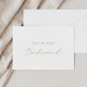 Esta delicada carta de proposta de uma dama de caligrafia em ouro é perfeita para um casamento moderno. A design romântica minimalista apresenta uma magnífica e elegante tipografia amarela ouro champanhe num fundo branco com um aspecto simples e limpo. Personalize a placa com o nome da noiva e da dama de honra. Personalize a parte traseira do cartão com uma mensagem personalizada.