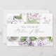 Esta rústica matrona lilática de honra é perfeita para um casamento de primavera ou verão. A romântica e elegante design floral apresenta flores lilás roxas de aquarela com uma sensação de jardim boho country. Personalize o cartão com o nome da noiva e a matriz de honra. Personalize a parte traseira do cartão com uma mensagem personalizada.