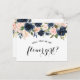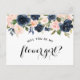 Peça aos seus amigos e familiares para fazerem parte do seu casamento com este cartão floral "Você Será Minha Menina de Flores?" com elementos florais navy e blush e caligrafia feminina. Itens correspondentes estão disponíveis. Cartão de proposta para cortejo