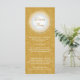 Um quadro circular contra uma cor damasco floral amarela ouro dá a este cartão de menu uma sensação rica e opulente. Use-o como um menu ou qualquer peça impressa que você precise para seu casamento, chá ou festa de compromisso. Personalize-o com o seu próprio menu ou outras informações na frente e adicione o(s) seu(s) nome(s) e data do evento no verso contra a mesma cor damasco. Disponível em cores alternativas com produtos correspondentes. com