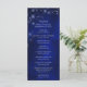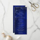Este cartão do programa de casamento mostra uma galáxia noturna estrelada de prata brilhando contra um fundo azul de gradiente profundo. Há muito espaço para seu texto personalizado, também em cinzas prateadas. Se precisar alterar a fonte, o tamanho, o local ou a cor do texto, use Personalizar. A parte de trás do convite é o mesmo azul de gradiente profundo.