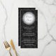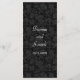Um quadro circular contra uma rica cor damasco floral preta dá a este cartão de menu uma sensação rica e opulente. Use-o como um menu ou qualquer peça impressa que você precise para o seu casamento, chá ou festa de noivado. Personalize-o com o seu próprio menu ou outras informações na frente e adicione o(s) seu(s) nome(s) e data do evento no verso contra a mesma cor damasco. Disponível em cores alternativas com produtos correspondentes. com
