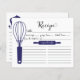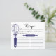 Cartões de receita da cozinha de Chá de panela contemporânea com letra de script de tipografia preta, com letra na moda, com um uísque azul, rolando pino e mixer de mão. A frente do nosso cartão de receita oferece espaço para um título de receita, da cozinha e do espaço de ingredientes. Sacudir as instruções de exibição do cartão de receita. Visite nosso compro para convites de chá de panela correspondentes Disponíveis em nosso compro em uma grande variedade de cores populares do chá de casamento. Chá de panela perfeito para o estoque do chá de panela da cozinha.
