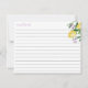Cartão de receita adornado com limões de cor d'água, folhas verdes brilhantes e flores roxas lavandas para corresponder aos meus designs de convite para chás.