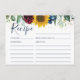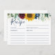 Cartão de Receita de Chá de panela Floral Chic Sunflower