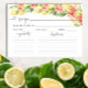 Os motivos limões e rosa, de aquarelas, trazidos à vida com finesse artístico, criam um banquete para os olhos. A elegante caligrafia acrescenta um ar de luxo e sofisticação, elevando o cartão de receita a um nível de elegância refinada. Este cartão de receita não é apenas uma peça funcional, mas uma obra de arte que representa a alegre ocasião de um chá de panela. Ela dá palco para uma celebração cheia de amor, risos e delitos culinários. Convida o receptor a partilhar as suas receitas prezadas, capturando a essência da tradição e da união. Itens correspondentes também estão disponíveis. Obrigado!