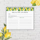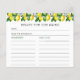 Celebrar os sabores da Itália com este cartão de receitas, perfeitamente desenhado, perfeito para um chá de panela italiano La Dolce Vita ou um chá de panela Positano. Adorado com trabalho de arte de limão vibrante e verde-luxuoso inspirado na ensolarada costa de Amalfi, esta carta é uma forma deliciosa de reunir receitas queridas da família e dos amigos. Ideal para um chá de panela mediterrânico, combina elegância com um toque pessoal, criando um guardião que a futura noiva tesouro para sempre. Ordene agora que acrescente o resto do verão italiano às suas memórias de chá de panela!