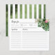 Cartão de receita moderno para o seu chá de panela temático tropical com ilustração aquosa de folhas botânicas, incluindo monstera, palma e flor de proteína rosa-rei. Peça aos seus hóspedes para preencherem este cartão de receita e levá-los à noiva ou ao chá de casamento.