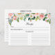 Cartão de Receita Floral Rosa e Branco Aquarela para Chuveiro de Noiva ou Chuveiro de Bebê