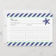 Cartão de recepção com design de peixe-estrela náutico e fundo de faixas azuis marinho.