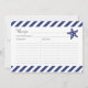 Cartão de recepção com design de peixe-estrela náutico e fundo de faixas azuis marinho.