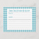 Cartão de Receita de Gingham Azul. Disponível em muitas cores. Crie um conjunto de correspondência de N. O texto na placa é opcional.