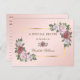 Crie um belo cartão de receita para a noiva com rosas rosa e verdejante emoldurando os detalhes da receita. Cartão de receita floral dourado e rosa. Personalize facilmente online.