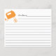 Cartões de receita de cozinha de Chá de panela contemporâneo com letra de script de tipografia preto, com letra na moda, com um tangerine orange whisk, rolando pinos e mixer de mão. A frente do nosso cartão de receita oferece espaço para um título de receita, da cozinha e do espaço de ingredientes. Sacudir as instruções de exibição do cartão de receita. Visite nosso compro para convites de chá de panela correspondentes Disponíveis em nosso compro em uma grande variedade de cores populares do chá de casamento. Chá de panela perfeito para o estoque do chá de panela da cozinha.