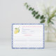 Design de cartão de recebimento adornado com um limão de aquarela simples com folhas verdes, contra um acento de texto branco azul antigo que combina meus designs de chá de panela na mesma mira. Há também realces de texto cor-de-rosa-negrito. (Ofereço também este design com sotaques de texto azul-claro).