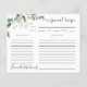 Peça aos hóspedes no chá de panela que compartilhem sua receita favorita com a noiva-a-ser com este simples cartão de "Receita Especial". Este design tem verde de eucalipto aquoso e itens coordenadores estão disponíveis em nossa loja.