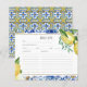 Este elegante cartão de receita de chá de panela para a noiva apresentar um fundo branco com azulejos, flores e limões/citros azuis mediterrânicos. Personalize-o para as suas necessidades. Você pode encontrar produtos correspondentes na minha loja.