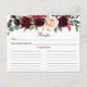 Cartão de Receita Floral Azul Marsala, Burgundy, com Aquarela, para Chá de panela ou Chá de fraldas