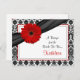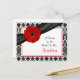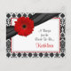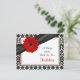 O texto deste cartão de receitas preto e branco da margarida vermelha de gerbera é perfeitamente personalizável. Você pode alterá-lo usando a opção personalizar. Para alterações mais abrangentes no cartão postal, incluindo a alteração da fonte, cor da fonte ou layout da fonte, escolha a opção personalizar. Este cartão de receitas de margarida vermelha pode ser incluído no chá de panela correspondente para que os convidados chás de panela possam encher as costas com as suas receitas favoritas e trazer o cartão com elas para o chá como guardião do casamento para que a noiva seja. Você também poderia usar isso em um convite de aniversário alterando o texto tanto do convite quanto deste cartão. O convite correspondente é mostrado abaixo.