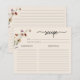 Cartão de Receita Floral. Este cartão de 'receita' de chá de noiva elegante e sofisticado apresenta belas flores silvestres pintadas à mão em aquarela, dispostas como um lindo buquê. Encontre itens correspondentes na Coleção Chá de Noiva Boho Bege Flor Silvestre.