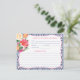 Design de cartão de receita adornado com flores arrojadas, folhas verdes brilhantes e sotaques de citros. A frente e o verso têm o azulejo branco azulejo azul. Este design de cartão de receitas corresponde aos meus designs de chá de panela na mesma via colorida.