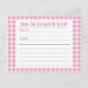 Cartão de Receita Gingham Rosa. Disponível em muitas cores. Crie um conjunto de correspondência de N. O texto na placa é opcional.