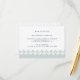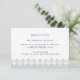 Projetado para combinar com nossos convites de casamento e eventos Arabesque, este cartão de recepção elegante em azul-esverdeado etéreo claro e azul-marinho apresenta uma borda inferior geométrica inspirada no Marrocos. Adicione as informações da recepção do seu casamento, como horário, local, endereço e detalhes de estacionamento ou transporte em azul-marinho.