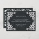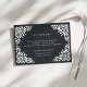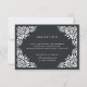 Projetado para coordenar com a nossa coleção de casamento Beaux Arts, este cartão de recepção elegante apresenta um papel picado fronteira branca moldando os detalhes da sua recepção de casamento, o momento e o endereço num fundo negro de carvão.