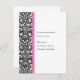 Um padrão de papel de parede damask preto e branco com destaques rosa destaca este cartão de recepção clássico. Facilmente personalizável com suas próprias informações. Disponível em cores alternativas com produtos correspondentes.